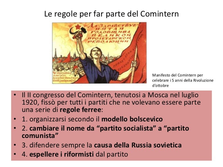• Crescita della paura del socialismo: dopo la Rivoluzione russa (1917) e il tentativo di rivoluzioni comuniste in Germania, Ungheria, Italia, cresce nei ceti borghesi e moderati il timore di una “contaminazione bolscevica”. --> Le proteste per l'economia in crisi e la disoccupazione in Italia portano al biennio rosso (1918 / 20).