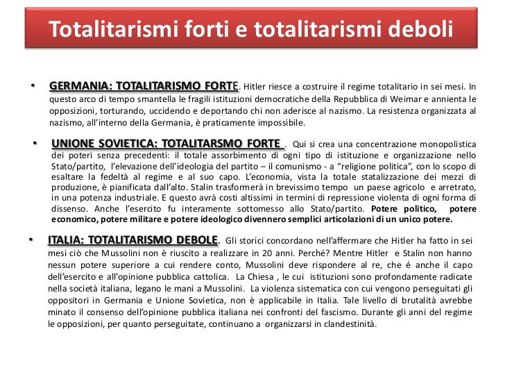 • Non ci fu il controllo assoluto delle coscienze, come invece aspirava il totalitarismo.